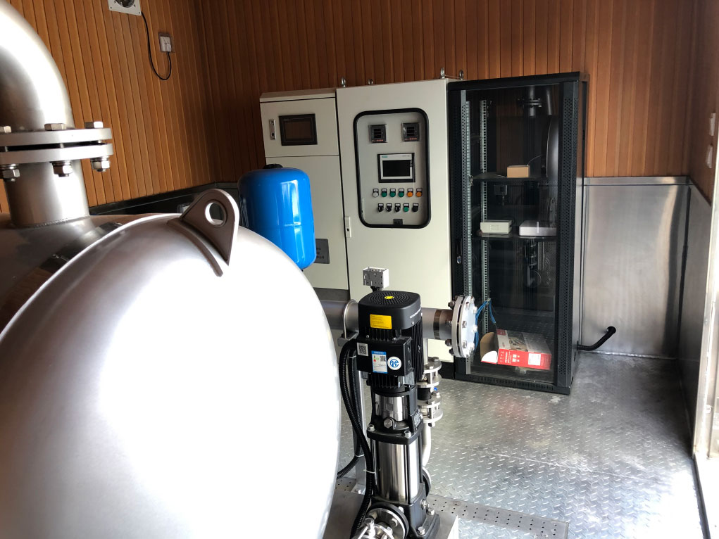 泵站將供水機組、電氣控制系統(tǒng)、安防系統(tǒng)、水質(zhì)監(jiān)測系統(tǒng)、遠程監(jiān)控系統(tǒng)、流量監(jiān)測設備、消毒設備、空調(diào)和除濕設備等集于泵站之內(nèi),泵站功能一應俱全。