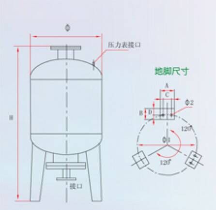 1. 隔膜式氣壓水罐可直接并聯(lián)在給水管路上,給水管道上應(yīng)安裝閥門(mén),罐體底部須安裝排污閥。